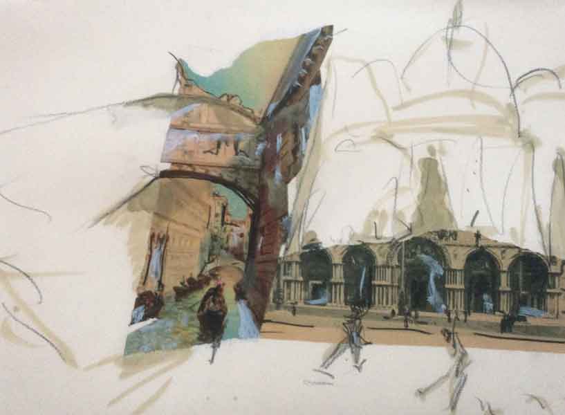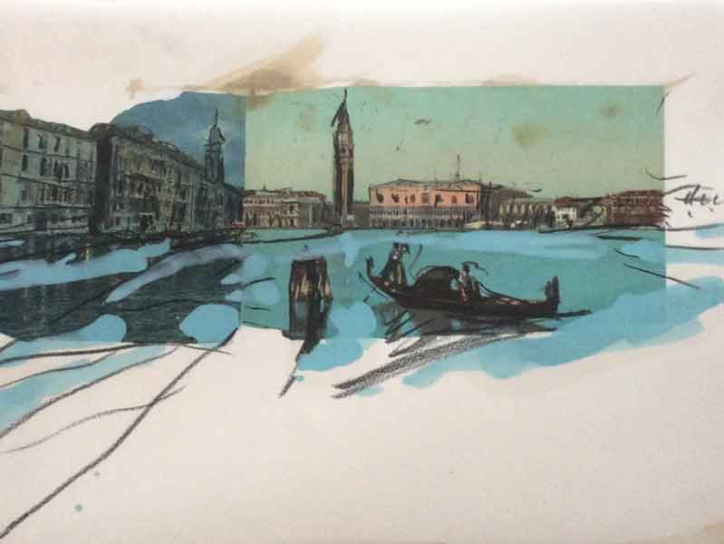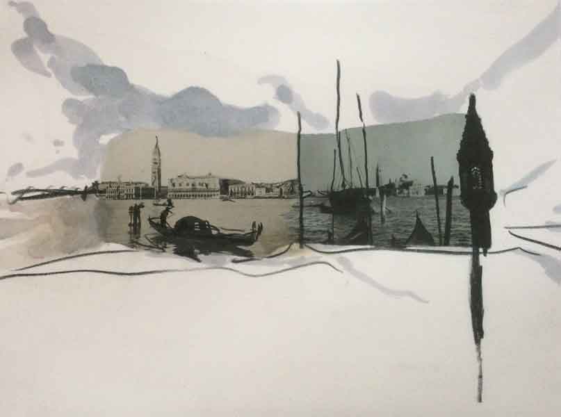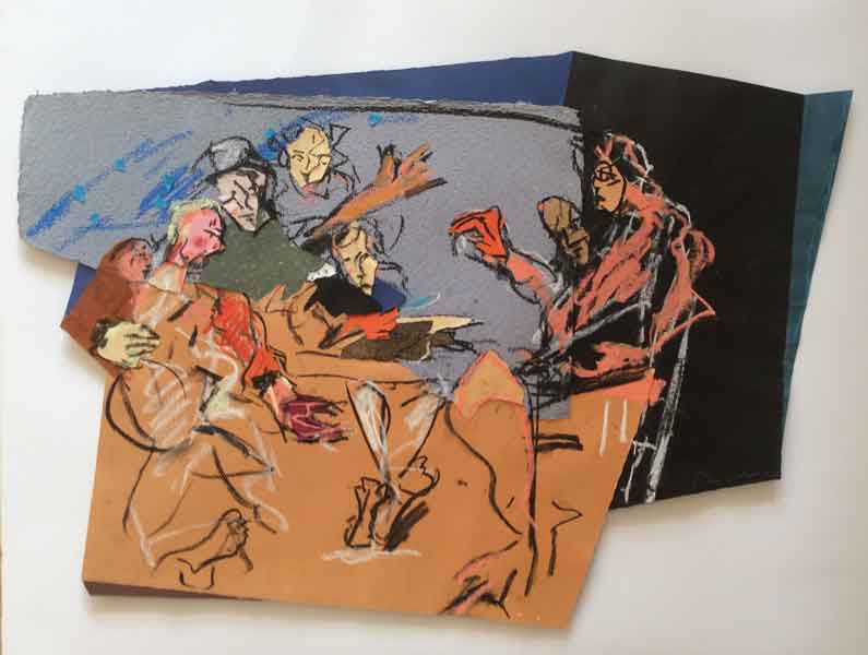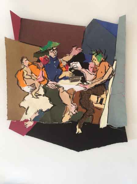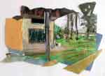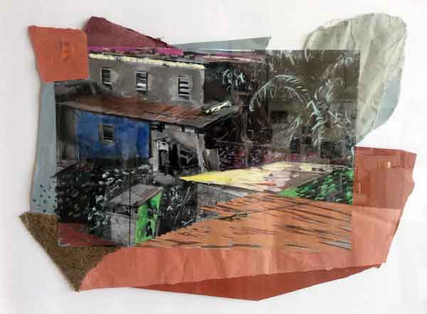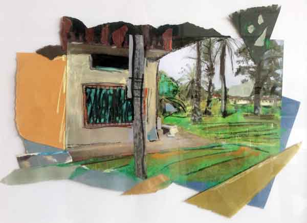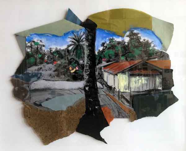 Lambarene (Gabun) , Collage, Ölfarbe, Fotoelememte, farbiges Papier