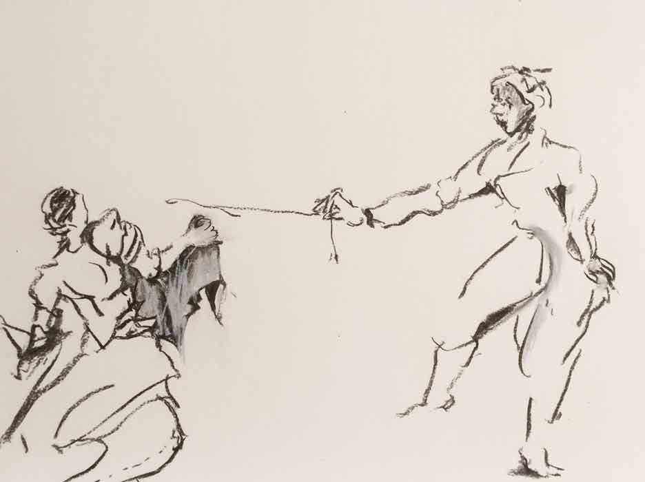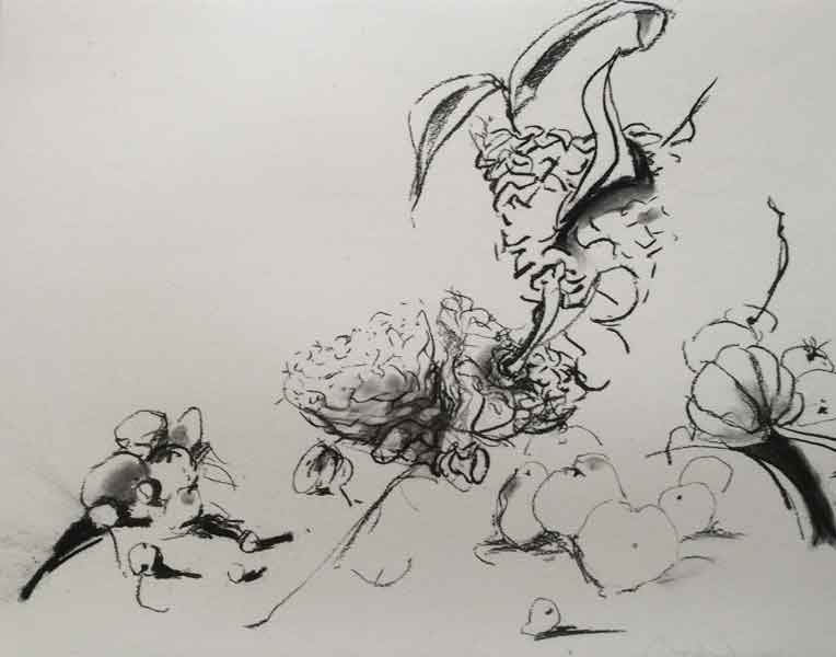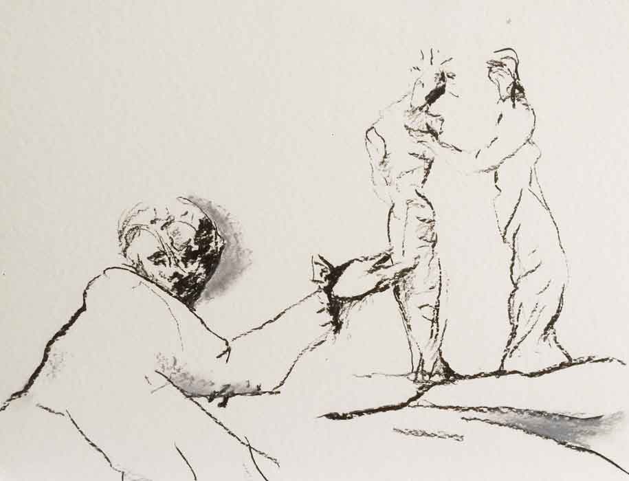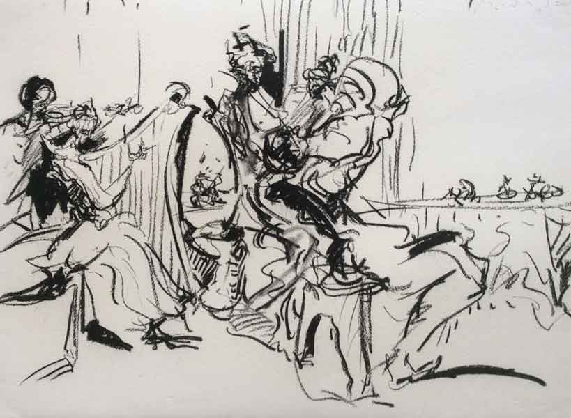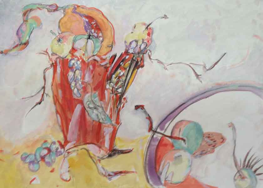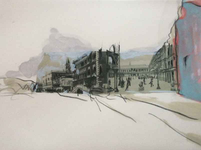 Lambarene (Gabun) , Collage, Ölfarbe, Fotoelememte, farbiges Papier